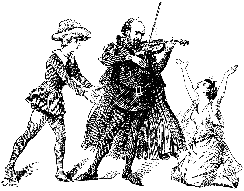 Coming Events at the Lyceum.—With the exception of Becket, the part of Shylock is Henry Irving's most powerfully striking impersonation, and certainly Ellen Terry is at her best as Portia. It is played once again this month before our Henry's departure for America, and should not be missed by any genuine lover of Shakspeare and of true dramatic art. À propos of this, a certain excellent lady, whose name, beginning with R, is not absolutely unknown to Mr. Punch, asked this question:—"Isn't there some character in one of Shakspeare's plays called 'Skylark'?" Then, as she proceeded to give a hazy idea of the plot, it gradually dawned upon the listeners that the Merchant of Venice was the person of whom she was thinking.