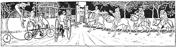 We do not think our book needs an apology, explanation, or preface; nor does it seem to us worth while to give our route-form, since the road from London to Canterbury is almost as well known to cyclers as the Strand, or the Lancaster Pike; nor to record our time, since we were pilgrims and not scorchers. And as for non-cyclers, who as yet know nothing of time and roads, we would rather show them how pleasant it is to go on pilgrimage than weary them with cycling facts.