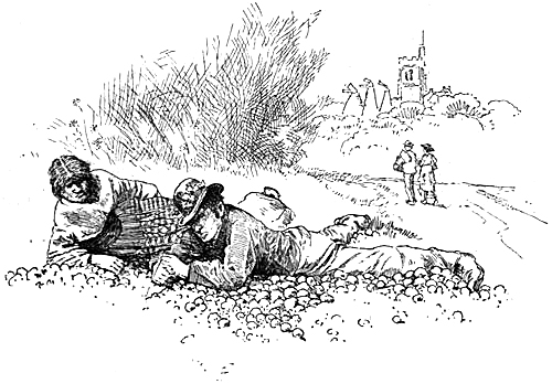 handkerchief he was holding; and now we came to a man and woman resting on