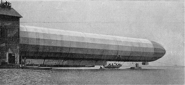 L'aérostat dirigeable du comte Zeppelin sortant de son