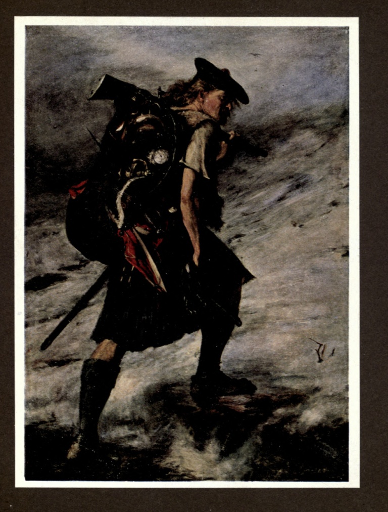 "The two English strangers, therefore, were ushered into the hall, where an unexpected display awaited them. Behind every seat stood a gigantic Highlander, holding in his right hand his drawn sword, and in the left a blazing torch.... 'Lost, lost,' said Musgrave gaily—'my own silver candlesticks are all melted and riding on horseback by this time, and I wish the fellows that enlisted were half as trusty as these.'"