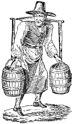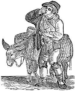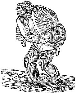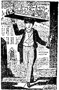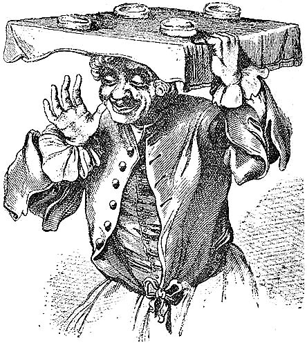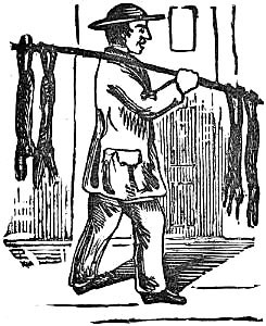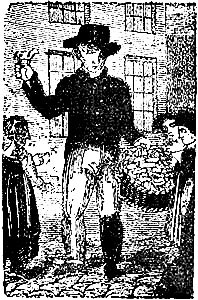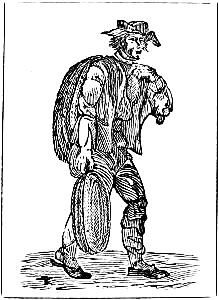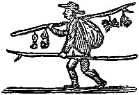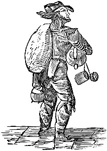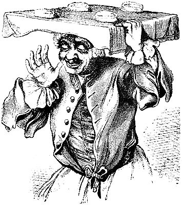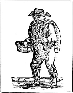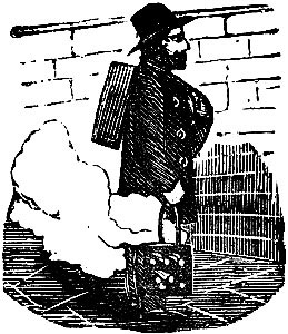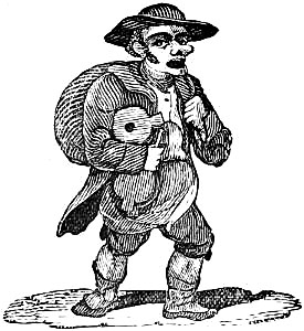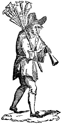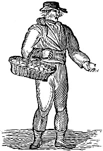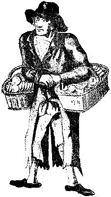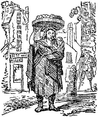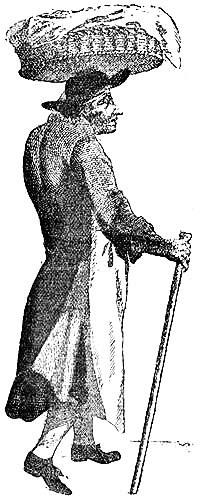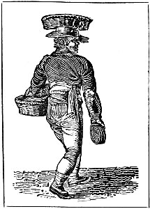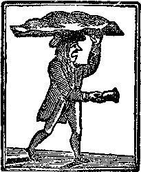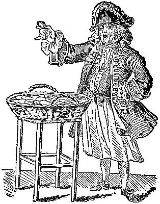 “We frequently meet with the pieman in old prints; and, in Hogarth’s ‘March to Finchley,’ there he stands in the very centre of the crowd, grinning with delight at the adroitness of one robbery, while he is himself the victim of another. We learn from this admirable figure by the greatest painter of English life, that the pieman of the last century perambulated the streets in professional costume; and we gather further, from the burly dimensions of his wares, that he kept his trade alive by the laudable practice of giving ‘a good pennyworth for a penny.’ Justice compels us to observe that his successors of a later generation have not been very conscientious observers of this maxim.”