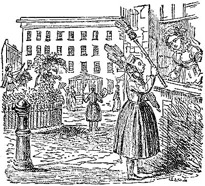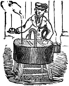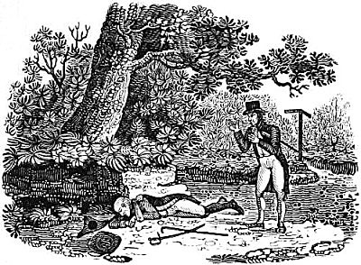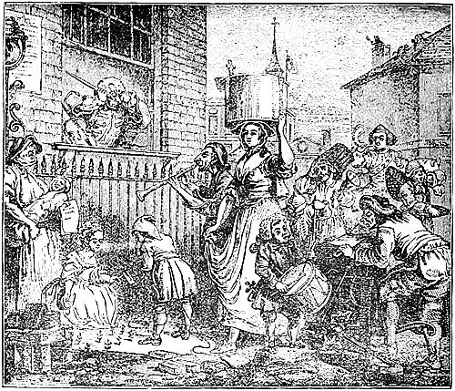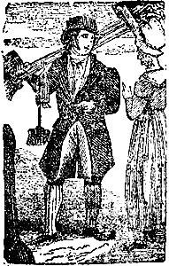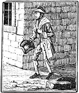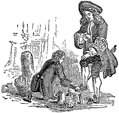 [11] Beau-Trap:—A loose stone in the pavement under which the water lodges in rainy weather, which when trodden on squirts it up to the great damage of light-coloured clothes and clean stockings. First invented by Sedan-chairmen, whose practice it was to loosen a flat-stone so that in wet weather those that choose to save their money by walking, might, by treading on the “trap” dirt their shoes and stockings.