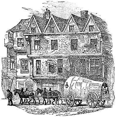 “We gladly retired before our historic doubts were confirmed by this traditional scholar, about this double Gloucester. His companion, as we thought rather aptly, but churlishly remarked, ‘cheese it,’ for they were both getting grumpy, and after this duplicate, we were fearful a fifth or a sixth might appear. But the house itself, one among the oldest in Southwark, we considered worthy a sketch, and, as our guide told us, ought to be ‘perpetrated.’ He said he could pull a bit, but draw he couldn’t; but he did—that is, four-pence for beer.”