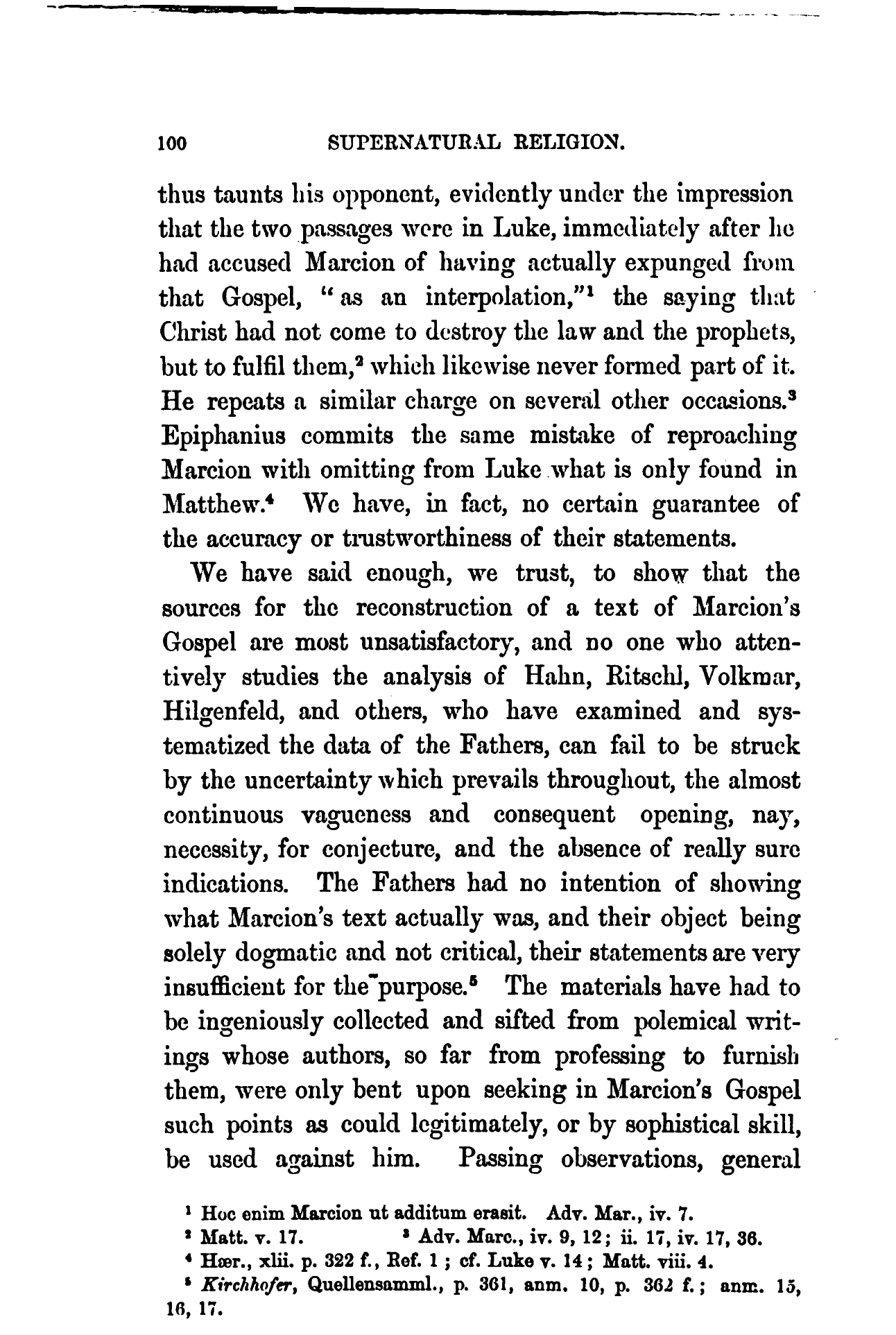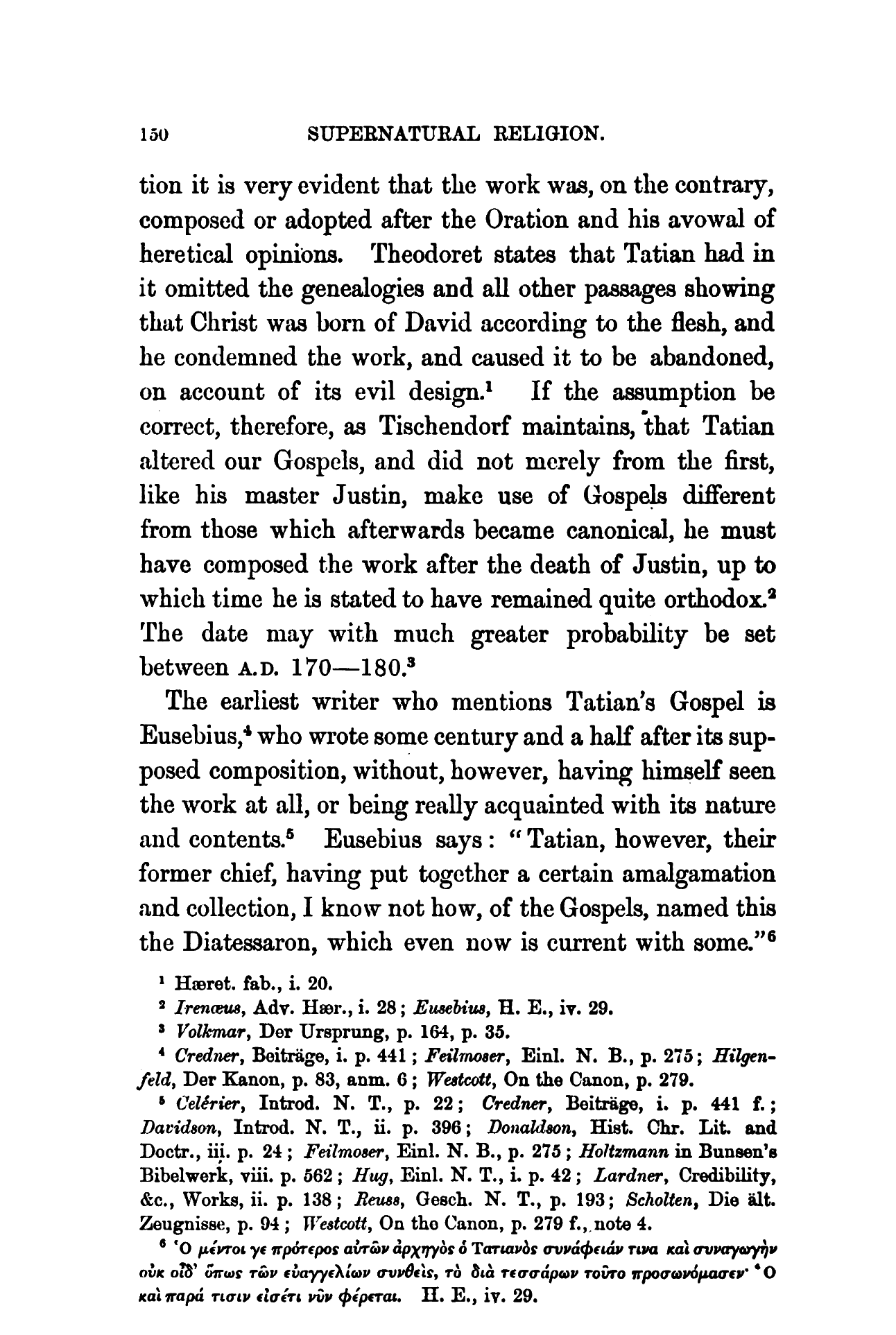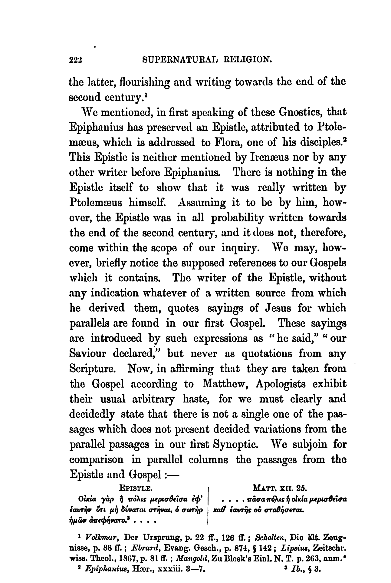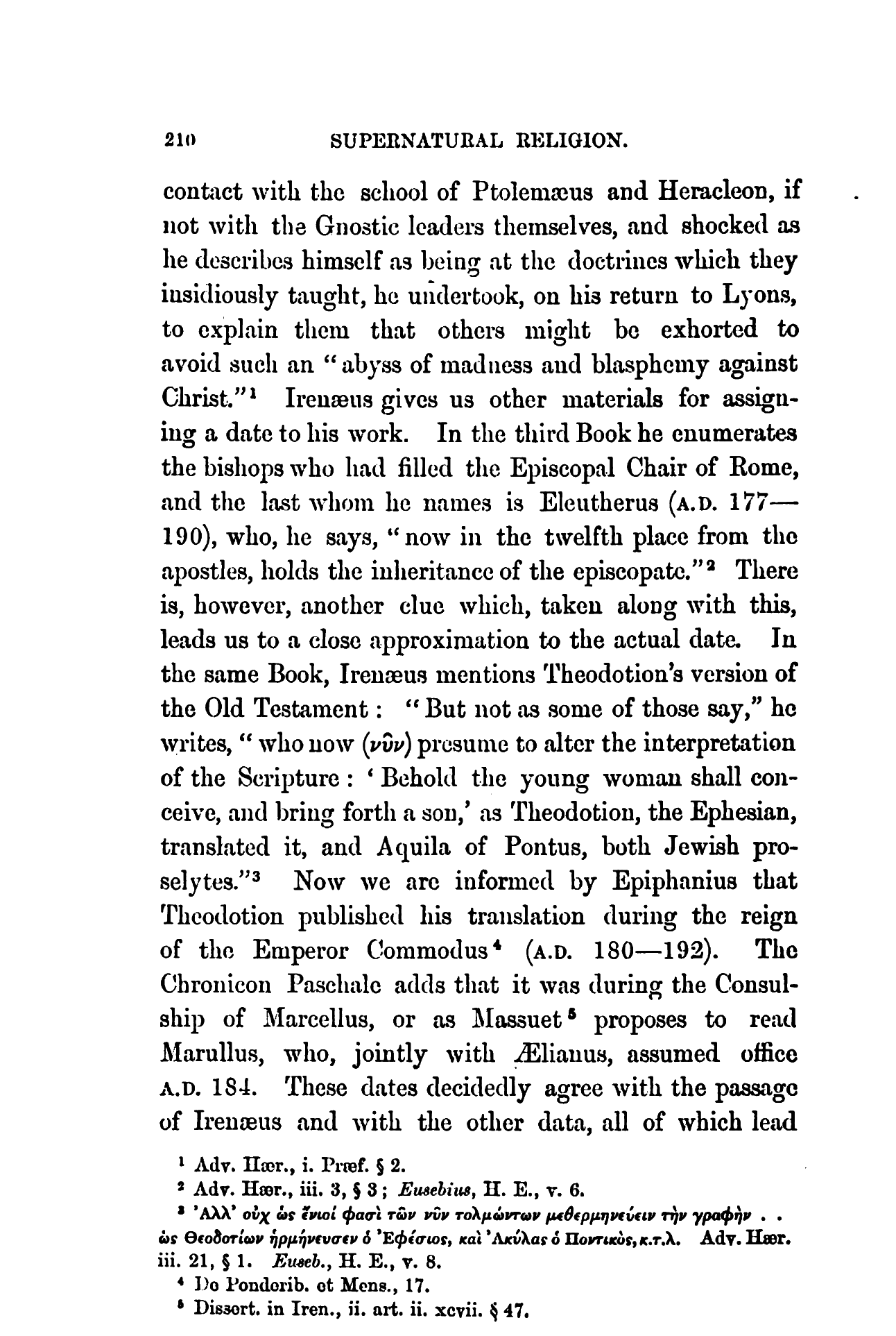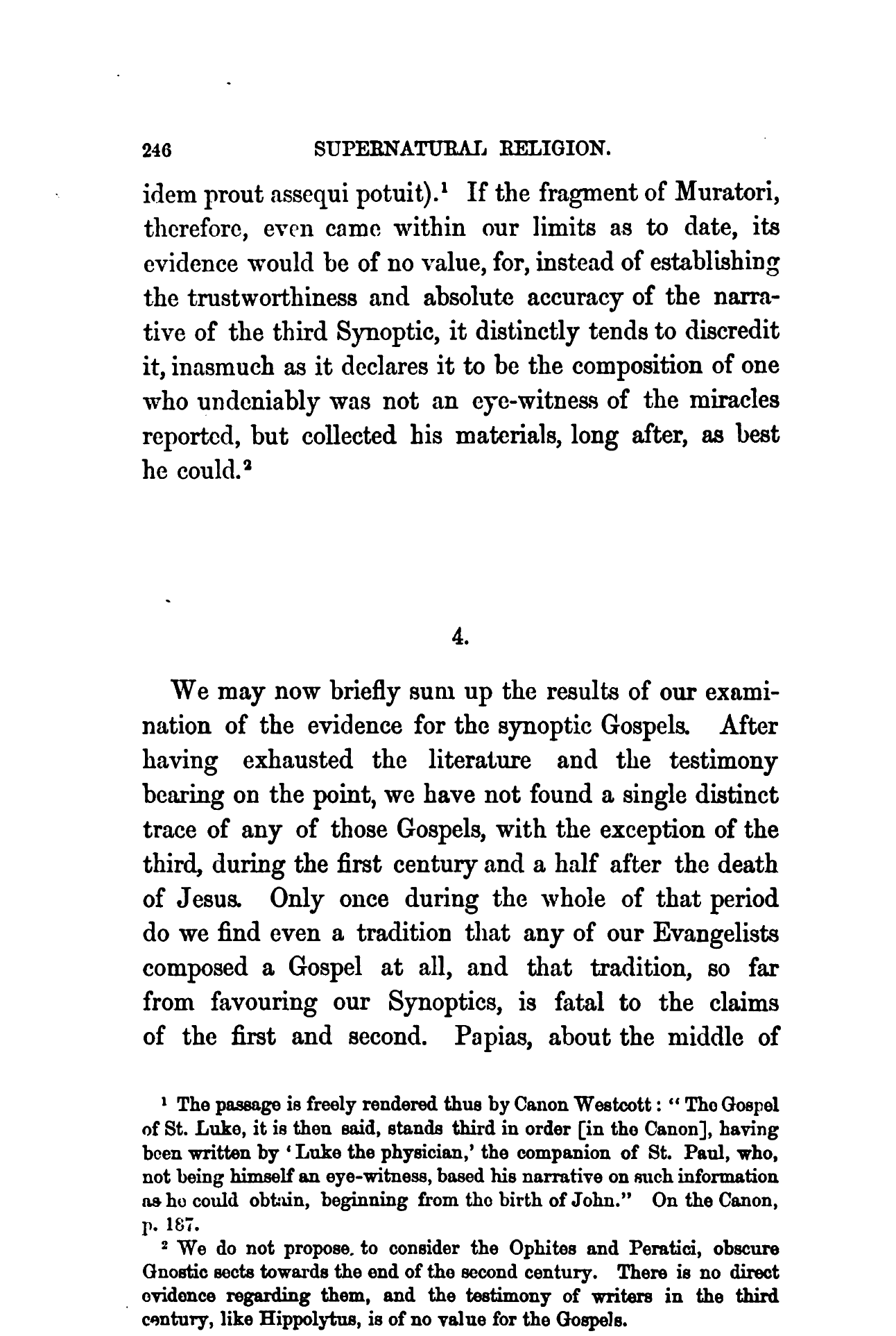 over the formation of the Canon, it is not singular that so many of the decisions of the Fathers have been reversed. Irenæus himself mentioned the existence of heretics who rejected the fourth Gospel,(1) and Epiphanius(2) refers to the Alogi, who equally denied its authenticity, but it is not needful for us further to discuss this point. Enough has been said to show that the testimony of the fourth Gospel is of no value towards establishing the truth of miracles and the reality of Divine Revelation.