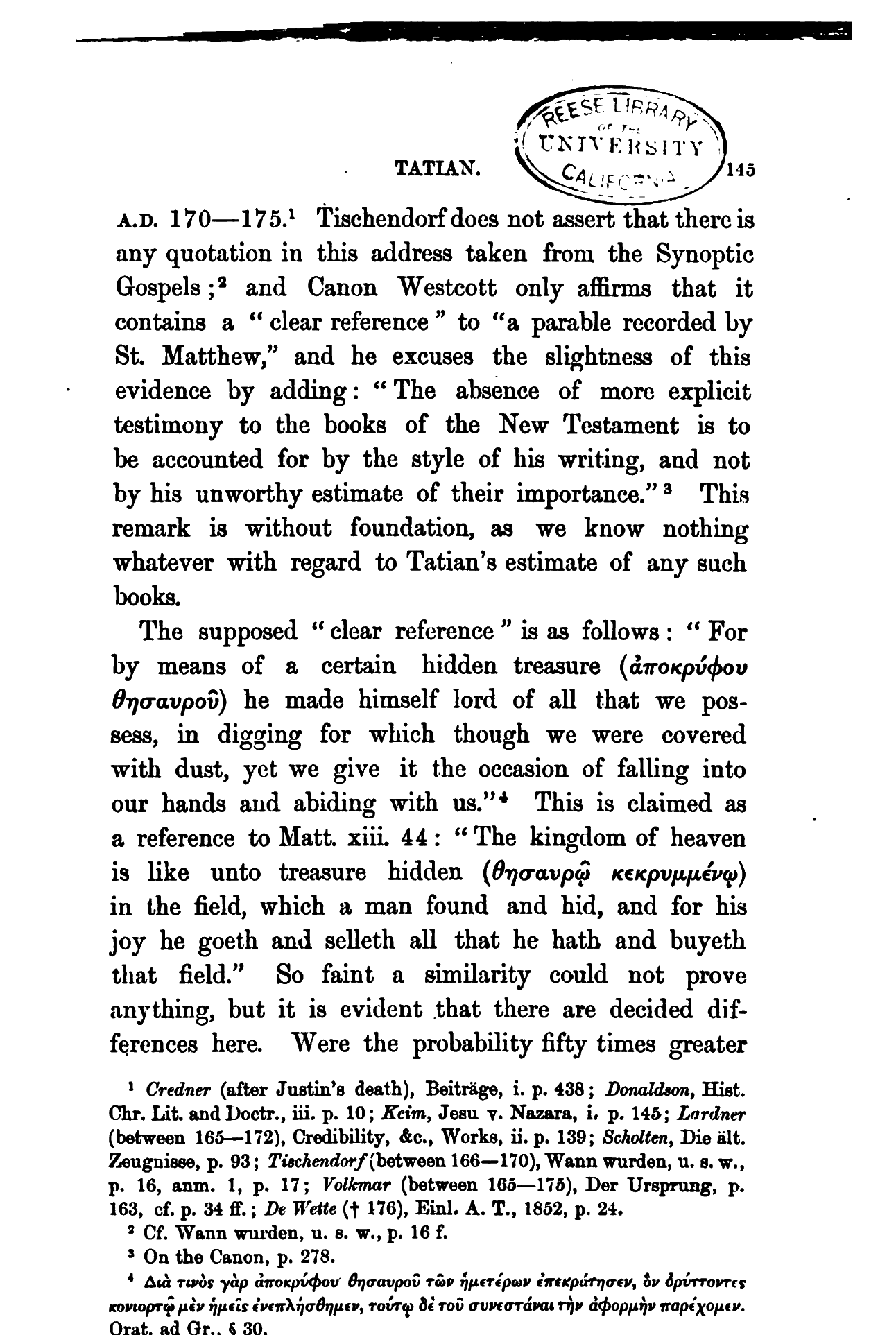 PG EDITOR'S NOTE: This file has been provided with an image of the original scan for each page which is linked to the page number. Nearly every page in the text has many Greek passages which have been indicated where they occur by [———] as have many complex tables; these passages may be viewed in the page images. Some of the pages have only a few lines of text and then the rest of the page is taken up with complex footnotes in English, Greek and Hebrew. The reader may click on the page numbers to see the entire page with the footnotes. —DW