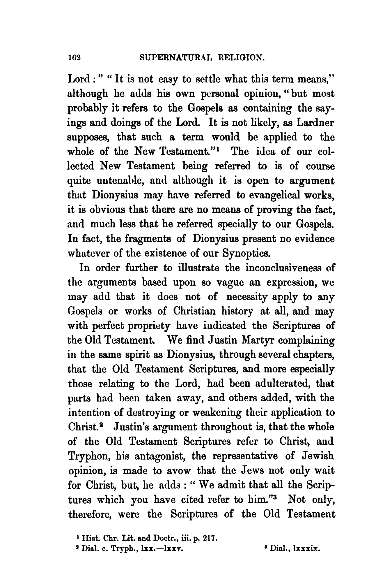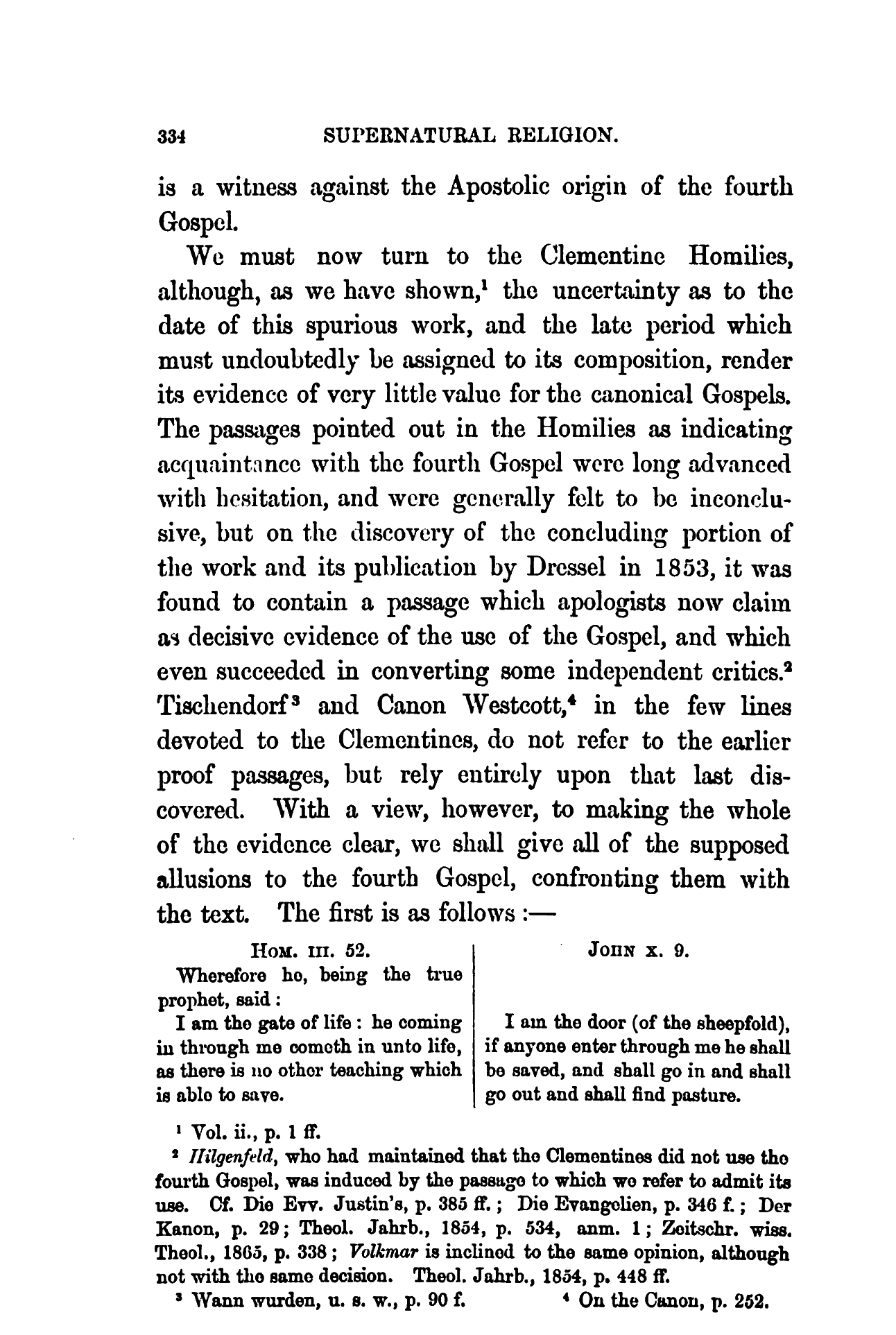 willing to admit the use of our Synoptics by the author of the Homilies along with other sources, make that concession on the strength of the absolute isolated evidence of the Homilies themselves, but they are generally moved by antecedent views on the point. In an inquiry like that which we have undertaken, however, such easy and indifferent judgment would obviously be out of place, and the point we have to determine is not whether an author may have been acquainted with our Gospels, but whether he furnishes testimony that he actually was in possession of our present Gospels and regarded them as authoritative.