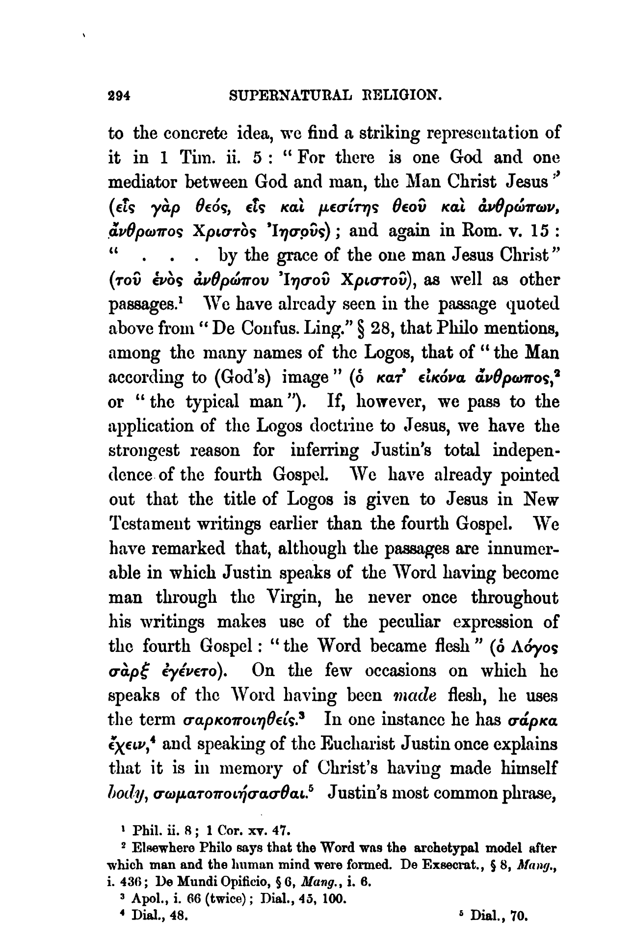 wonderfully terse, clear, brief sayings and parables, the other in long, involved, and diffuse discourses; one clothed in the great language of humanity, the other concealed in obscure philosophic terminology;—and that these should have been kept so distinct as they are in the Synoptics, on the one hand, and the fourth Gospel, on the other. The tradition of Justin Martin applies solely to the system of the Synoptics: "Brief and concise were the sentences uttered by him: for he was no Sophist, but his word was the power of God."(1)