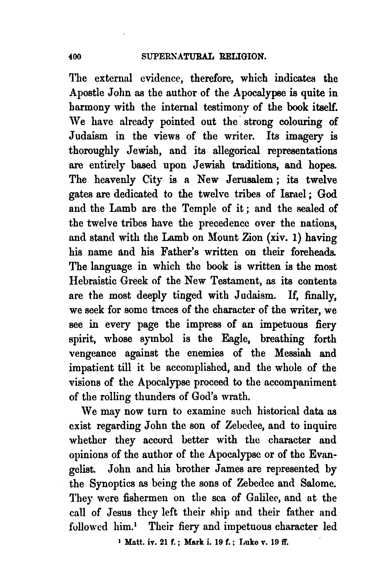 evident Judaistic tendency, however, which made John wear the priestly mitre may distinguish him as author of the Apocalypse, but it is fatal to the theory which makes him author of the fourth Gospel, in which there is so complete a severance from Judaism.