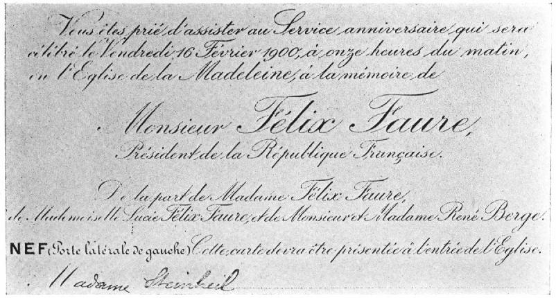 | Invitation to the Félix Faure "In Memoriam Service" | 116 | |