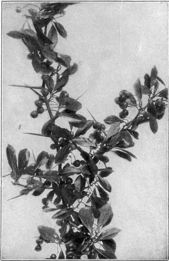 It is plain to see that time is no object to this slow-growing dwarf juniper, found in both the Eastern and Western Hemispheres, covering vast stretches of waste land. From Greenland to Alaska it is found and south along the highlands into Pennsylvania, New Mexico, and California. Its hardiness gives it importance as a cover for waste land on seashores and for hedges and wind-breaks in any exposed situation. It is a tree reaching thirty feet in height on the limestone hills of southern Illinois. In other situations it is usually a sprawling shrubby thing, the cringing parent [Pg 276] of a race of dwarf junipers, known in many and various horticultural forms.