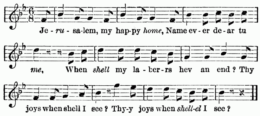 Here the door which led to the entrance-hall was opened with a jerk by Linda, a plump negro girl, who bounced in, ejaculated "Lady!" in a congratulatory tone, and then bounced out to act as usher for the incoming guest.