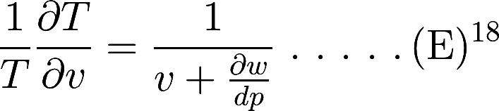 Now, since the original temperature has been restored, the same expansion dv if imposed isothermally would involve the same energy change de; but in that case heat dH (dynamical) would be absorbed, and work pdv would be done by the gas. Hence de = dH − pdv. This, with the former value of de, gives dH = vdp − Cp∂T. Thomson's work-ratio is thus pdv ⁄ (vdp − Cp∂T). Now suppose dp imposed without change of volume, and dT to be the resulting temperature change. The temperature and pressure ratios are dT ⁄ T, dp ⁄ p. Thus dT ⁄ T = dp dv ⁄ (vdp − Cp∂T), or