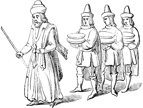 The edict of Tours must have given satisfaction to the barbers, and they were not slow to avail themselves of the opportunities the change afforded them. In London, and we presume in other places, the barbers advertised their blood-letting in a most objectionable manner. It was customary to put blood in their windows to attract the attention of the public. An ordinance was passed in 1307, directing the barbers to have the blood “privily carried into the Thames under pain of paying two shillings to the use of the Sheriffs.”