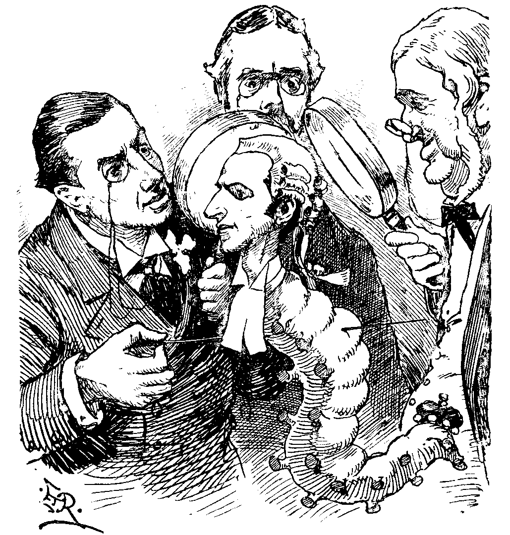 "What is the state of a Peer pending issue of Writ of Summons?" asked the Squire, suddenly taking to interrogate the Committee assembled to question him. "Is he a caterpillar passing through a larva, spinning a cocoon of silk until he reaches a condition where they toil not neither do they spin?" (Here, quite by accident, his glance fell upon Joseph, supposed to be sitting upon him in judicial capacity.) "There is," he continued (and here he glanced at Prince Arthur, smiling at the sly hit dealt at his dear friend Joe) "an opening for philosophic doubt as to the precise condition of this impounded Peer in his intermediary state."