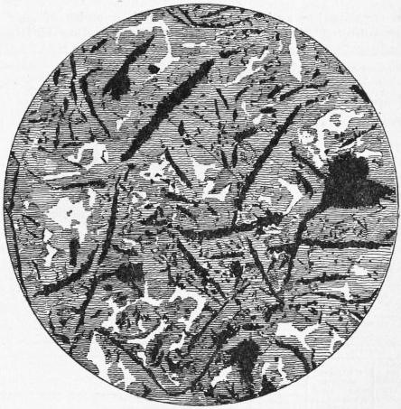 The fact that no Cambrian strata have been established by palaeontological evidence in the west of Ireland has made it equally difficult to establish any pre-Cambrian system. The great difference in character, however, between the Silurian strata at Pomeroy in county Tyrone and the adjacent metamorphic series makes it highly probable that the latter masses are truly Archean. They form an interesting and bleak moorland between Cookstown and Omagh, extending north-eastward into Slieve Gallion in county Londonderry, and consist fundamentally of mica-schist and gneiss, affected by earth-pressures, and invaded by granite near Lough Fee. The axis along which they have been elevated runs north-east and south-west, and on either flank a series of “green rocks” appears, consisting of altered amygdaloidal andesitic lavas, intrusive dolerites, coarse gabbros and diorites, and at Beagh-beg and Creggan in central Tyrone ancient rhyolitic tuffs. Red and grey cherts, which have not so far yielded undoubted organic remains occur in this series, and it has in consequence been compared with the Arenig rocks of southern Scotland. The granite invades this “green-rock” series at Slieve Gallion and elsewhere, but is itself pre-Devonian. Even if the volcanic and intrusive basic rocks prove to be Ordovician (Lower Silurian), which is very doubtful, the metamorphic series of the core is clearly distinct, and appears to be “fundamental” so far as Ireland is concerned.