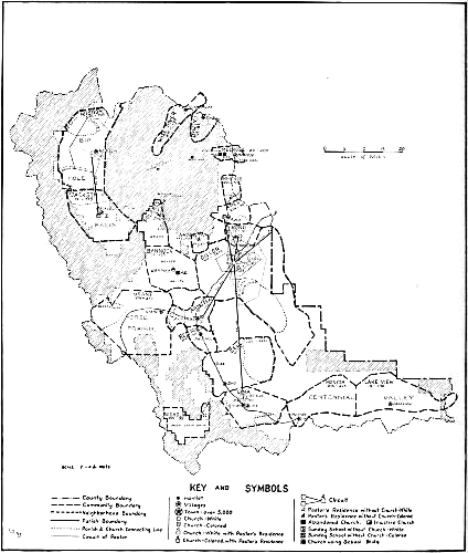 The material in this book presents a composite picture of the religious conditions within these four counties. Certain major problems, which were found with more or less frequency in all four counties, are discussed, and all available information from any of the counties has been utilized. The opening pages of the book, however, summarize the conditions within each county. While this method has obvious drawbacks it is felt that the advantages outweigh them, and that this treatment is the best suited to bring out the peculiar conditions existing throughout this area. The appendices present the methodology of the survey and the definitions employed. They also include in tabular form the major facts of each county as revealed by the investigation. These appendices are intended especially to meet the needs of church executives and students of sociology who desire to carry investigation further than is possible in the type of presentation used for the main portion of the book.