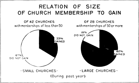 About two-thirds of the churches with resident ministers made a gain in membership; of the churches with non-resident ministers only about one-third show a gain. Fourteen churches were either pastorless or were served by a supply. Six of them made a gain during the year preceding the survey.