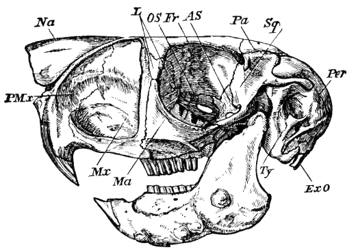 [366] Even in the Otter-like Potamogale the upper jaw, though broad and flat, projects considerably beyond the lower.