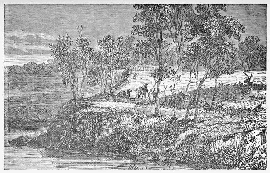 Whilst awaiting the arrival of Wright with the remainder of the company, frequent excursions were made in order to find a route to the north. On one of these excursions, Mr. Wills travelled ninety miles without finding water; their camels escaped from them, and he and his companions were forced to return on foot. Fortunately for them they found a pool on their way back to the depôt, but the camels were never recovered. On another occasion Wills and King got into a stony desert. The knowledge obtained by means of these and other short excursions was not of an encouraging nature to the explorers.