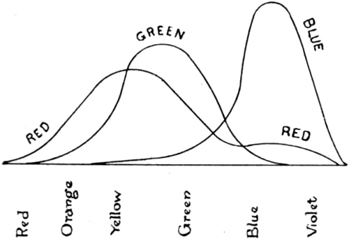 [6] Some recent experiments on artificial colour-blindness (Proc. Roy. Soc., Feb., 1898) have led Mr. Burch to the conclusion that there are really four fundamental colour-sensations—a red, a green, a blue, and a violet. His results are, however, thought to be capable of a different interpretation.