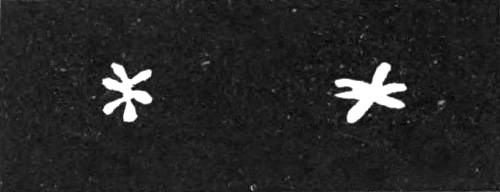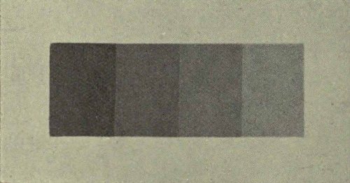 The dark reaction known as the Charpentier effect occurs at the beginning of a period of illumination. There is also a dark reaction of very short duration at the end of a period of illumination. It should be explained that, owing to what is called the proper light of the retina, ordinary darkness does not appear absolutely black: even in a dark[Pg 193] room on a dark night with the eyes carefully covered, there is always some sensation of luminosity which would be sufficient to show up a really black image if one could be produced. Now the darkness which is experienced after the extinction of a light is for a small fraction of a second more intense than common darkness.