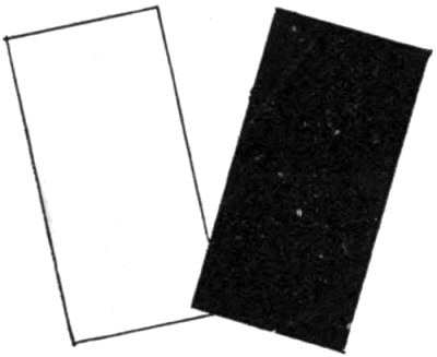 Once more making use of the black[Pg 222] and white screens depicted in Fig. 46, let the black screen first cover the paper upon which the wafer is lying; this will darken a portion of the retina, and render it sensitive. Then let the screens be quickly moved sideways, so that the wafer, after having been seen for a moment through the opening, may be immediately covered by the white screen. A bright but evanescent greenish-blue ghost will succeed the red impression.