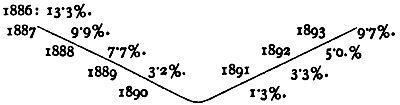 "He lived on one of the main arteries of nomadic travel from London and the north to Plymouth and the west, and had peculiar opportunities for observation, of which he freely availed himself. Casuals applying for police orders 1890-91 (years of fairly good trade), 2,109; casuals applying for police orders 1893-94 (years of depressed trade) 4,705. Certainly the additional 2,596 were not "professional tramps," but, as usual, unfortunate inferior workmen who were the first to receive notice when trade was bad."[20]