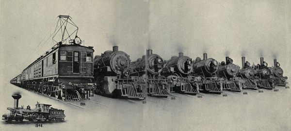 [3] “In the five years, ending with 1906, the number of locomotives ordered by the railroads of the United States was almost 22,400, or almost 4,500 per year. During the five years, ending with 1916, the number ordered has been less than 14,000, or about 2,800 a year.