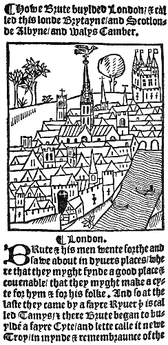 Fig. 16.—Earliest printed view of London, from the Cronycle of Englonde, Pynson, 1510 39