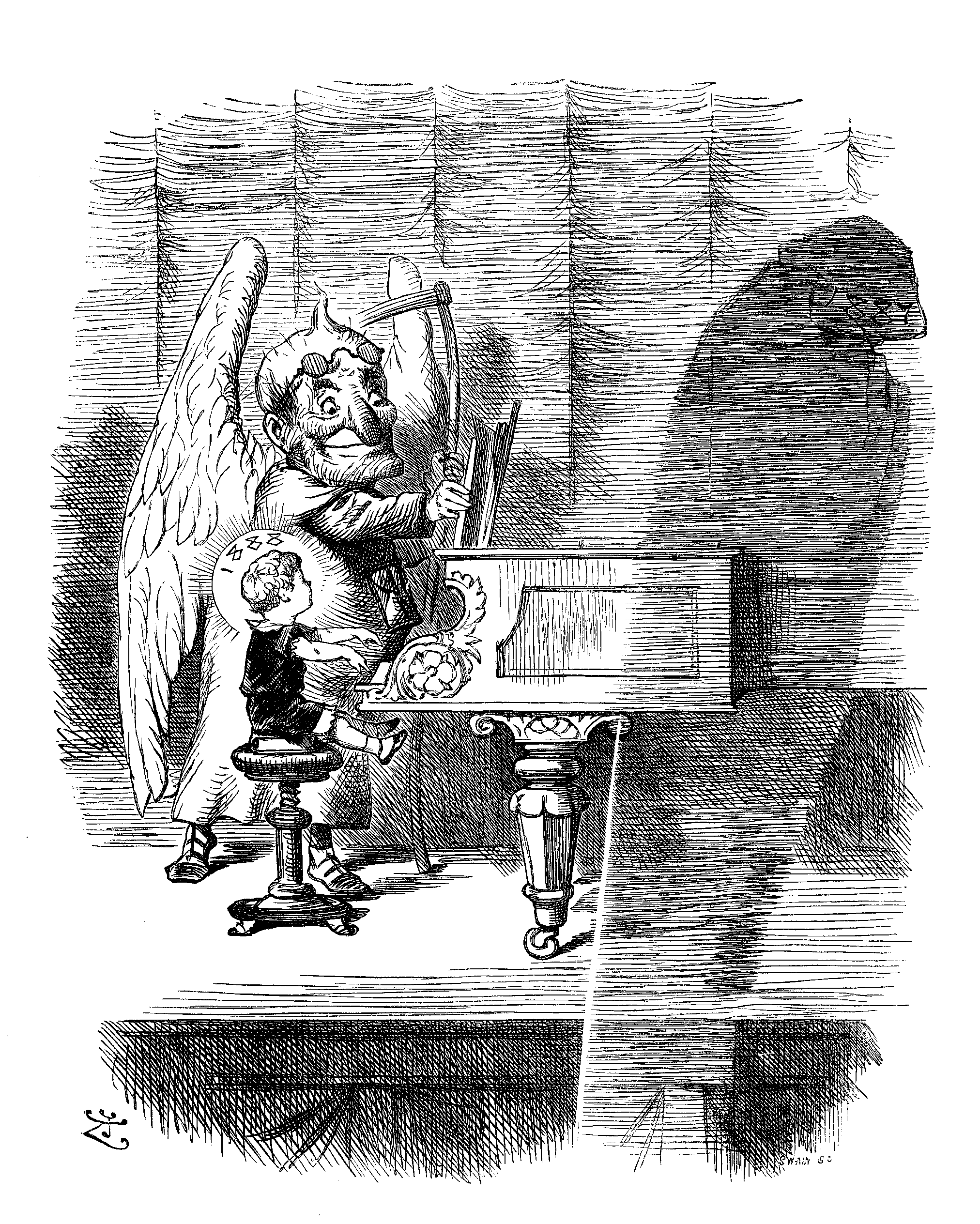 C. You don't 'pear to unnerstand that a Cornet's very mush thirstier instrumen' than a iron-grand out o' tune—but you're a good young feller—I li' a shentimental young chap. I'm a soft-'arted ole fool myshelf!