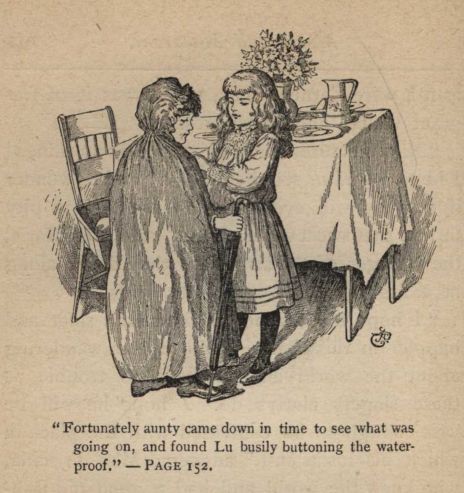 She was faint now with hunger and heat, for the day grew hot, and the anxiety she felt made her heart flutter while she hurried along the dusty road till she came to the pretty house in its gay garden, where some children were playing. Anxious not to be seen, Trudel slipped up the steps, and in at the open window of a room where she saw the master and his wife sitting at table. Both looked surprised to see a shabby, breathless little girl enter in that curious fashion; but something in her face told them that she came on an important errand, and putting down his cup, the gentleman said quickly,--