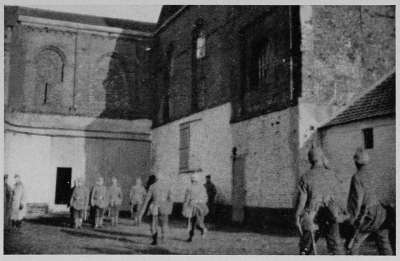 These books throw an interesting light upon the question of shelled churches. The Allies have accused the Germans and the Germans have accused the Allies of using church steeples for observation posts. Both[318] armies have used them, both have shelled them. I make this statement because I saw the cathedral of Malines gaping with a hole that could only have come from a German gun—so did the lines run—and because at Houtem, I climbed the steeple of the church of the Annunciation of Mary the Virgin to a German post, and I make this statement because on page 176 of Volume III of these English books on Belgium, I read under "observation points" the names of no less than five churches for a single small district. I photographed this page; you may read the church for yourself.
