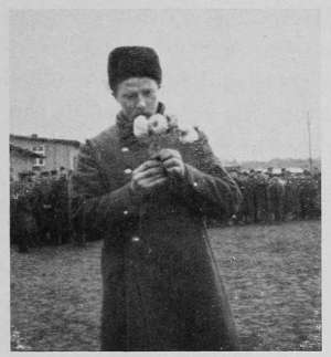 We walked then to the bedside of a mild-looking man, who, you learned, was Landwehr, private Grabbe of the second Stralsund. A bulkiness to his leg under the covers showed where he had been wounded, and when he saw the gray-coated officers, a question leaped in his quiet eyes. You wondered if he knew and how many days he had lain there doubting and dreaming if ever they would come. The Captain strode towards him, held out his hand, and said, "I congratulate you." You followed the soldier's eyes as they watched the Captain's hands reach into his coat pocket and draw from it the band of black and[306] white ribbon from which dangled the coveted cross. Without a word the Captain fastened it to the second button of the man's hospital jacket and stepping back, saluted him. You saw the soldier pick up the cross in both hands, stare at it a moment, while his eyes filled a little, and then his mild face turning wonderfully happy, he awkwardly expressed his thanks. As the last stammered word was spoken there burst from all the wounded a huzza. The nurses applauded and, overwrought, the soldier tried to sit upright in bed and bow his thanks. He had half succeeded when we saw him wince, and Dr. Sanders made him lie down. The congratulations over, we left him calling for pencil and paper, for at once he must write home about it. And you wondered how much you would have given could that one minute of this soldier's life be included in your own.