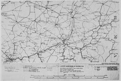 Opening his book, until he finds the index number 92 he reads that "To the southwest towards Neuville and Rotheux the country is very broken and wooded. There is a good level cultivated landing place, however, about 1500 yards south of the Fort de Boucelles.... Where communication with Liége exists." To use this map a British aviator flying over the section south of the line Charleroi, Namur, Liége and Brussels, would see what point he was over and would then look it up by the index number on the map and in the book he would read whether it was wise to make a landing there and just what conditions he would meet.