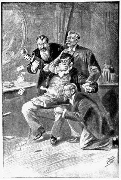 'Then, suddenly and without a moment's warning, Kepplinger was seized, gagged, and held hard and fast.... The great master-cheat was searched, and upon him was discovered the most ingenious holdout ever devised.'—Chap. v. p. 99.