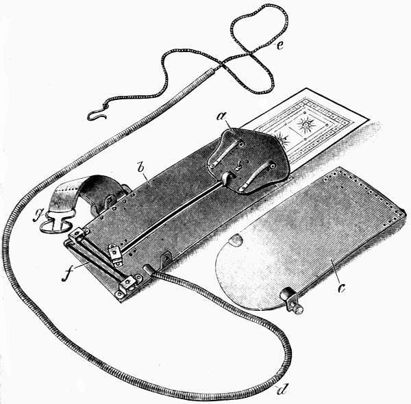 The directions sent out with the 'Jacob's Ladder' vest machine are very similar in character to the last. There is, however, one 'full-stop' in this case, probably the one which the typist was looking for. This is the manner in which the dealer instructs the purchaser in the use of his machine:—