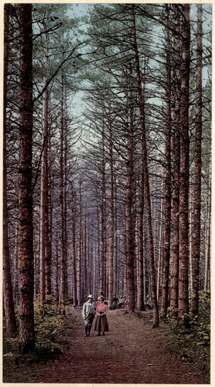 At Glen Eyre, the Blooming Grove Creek flows merrily into the Lackawaxen, coming out from Blooming Grove Township to the southward, an elevated wooded plateau in the interior of Pike, which is the common heading ground for numerous streams radiating in every direction, and containing a score of attractive lakes. This region is a wilderness where deer, bears and other wild animals roam, while the streams are noted angling resorts. In it are the two famous "Knobs," the highest elevations of the whole 266 Pocono range, the southern or "High Knob" rising two thousand and ten feet, out-topping the Kittatinny "High Point." This "Knob" stands like a pyramid, at least five hundred feet above all the surrounding country, excepting its neighbor, the "North Knob," which is only one hundred feet lower. These are the northeastern outposts of the Pocono range. Upon the top of the "High Knob" is a large boulder of white conglomerate, dropped by the ice in the glacial period, and this summit gives the most extensive view in Pennsylvania, over dark, fir-covered ridges in every direction, interspersed with lakelets glistening in the sunlight. There is not a house to be seen, and scarcely a clearing, but all around is one vast wilderness. The greater part of this region is the estate of the "Blooming Grove Park Association," covering thirteen thousand acres, surrounded by a high fence, and stocked with game and fish, there being over $300,000 invested in the enterprise. Here elk and deer are bred, there are abundant hares and rabbits, and also woodcock, grouse and snipe shooting. The spacious club-house is elevated high above the rocky shores of Lake Giles, a most beautiful circular sheet of clear spring water, fourteen hundred feet above tide, and to it the anglers and hunters take their families and enjoy the pleasures of the virgin woods.