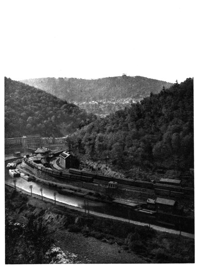 When the broad and shallow and rock-strewn river Susquehanna, on its way down from Otsego Lake in New York to the Chesapeake, breaks through the North Mountain, its valley expands to three or four miles in width, making a fertile region between the high enclosing ridges which the Indians called Maughwauwama, or the "extensive flat plains." This sonorous name underwent many changes, finally becoming known as Wyoming. Luzerne County is the lower and Lackawanna County the upper portion of this noted valley, which is the greatest anthracite coal-field in the world. These Wyoming coal measures 238 underlie seventy-seven square miles, having veins averaging eighty feet in thickness, and about eighty thousand tons to the acre, the aggregate deposit of coal being estimated to exceed two thousand millions of tons. The large population and enormous production have caused all the railways to send in branches to tap its lucrative traffic, so that it is the best-served region in Pennsylvania. It has two large cities—Wilkesbarre, in Luzerne, and Scranton, in Lackawanna. Wilkesbarre is on the eastern Susquehanna river bank, a town of forty thousand people, named after the two English champions of American Colonial rights. It covers much surface in the centre of the valley, with suburbs spreading far up the mountain sides. But from almost every point of view in the city the outlook is over black culm-heaps or coal-breakers or at rows of coal cars, so that there is a monotony in the steady reminder of the source of their riches, the omnipresent anthracite. About twelve miles northwest of Wilkesbarre, up in the North Mountain range, is the largest lake in Pennsylvania—Harvey's Lake—elevated nearly thirteen hundred feet and covering about two square miles. It is named after one of the early pioneers from Connecticut, and its outflow comes down to the Susquehanna near Nanticoke Gap. Its pleasant shores are a favorite resort of the Wilkesbarre people. The flourishing city of Scranton is about nineteen miles north of Wilkesbarre, in the Lackawanna Valley. 239 It has grown to a population of a hundred thousand people, and is picturesquely situated among the coal mines, with a higher elevation than Wilkesbarre, being nearly eleven hundred feet above tide, at the confluence of the Roaring Brook with the Lackawanna River; and it has extensive iron industries, being the chief city of northeastern Pennsylvania. The Wyoming and Lackawanna coal pits, while the greatest anthracite producers, are not generally so deep as those of the Lehigh or Schuylkill regions. The deepest Pennsylvania shaft goes down seventeen hundred feet near Pottsville. Some of the Wyoming galleries run a mile and a half underground from the shaft, following the coal veins underneath and far beyond the Susquehanna.