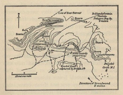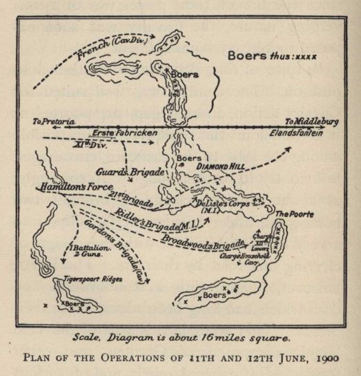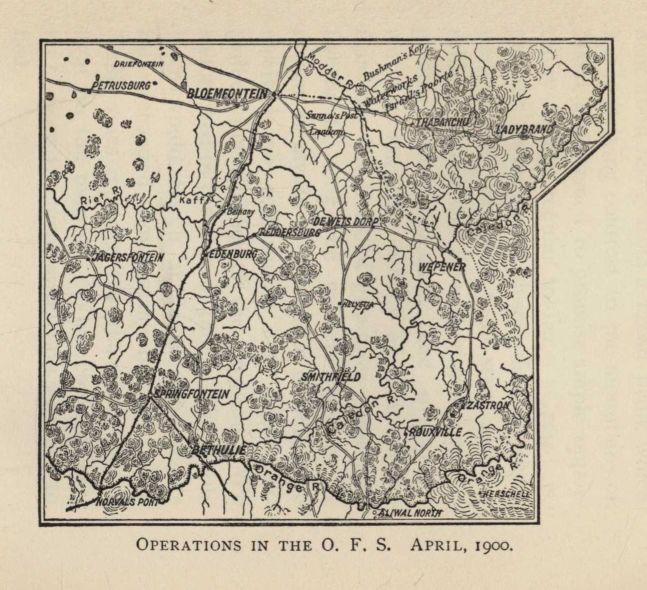 The letters now submitted to the public find in these facts their chief claim to be reprinted. While written in the style of personal narrative I have hitherto found it convenient to follow, they form a complete record of the operations of the flank column from the day when Ian Hamilton left Bloemfontein to attack the Waterworks position, until he returned to Pretoria after the successful engagement of Diamond Hill.