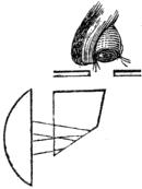 Dr. Wollaston’s camera lucida, as shown in Fig. 24, is sometimes attached to the eye-piece of the microscope for the same purpose. In this instrument the rays suffer two internal reflections within the glass prism, as will be seen explained in the article “Camera Lucida.” In this minute figure we have omitted to trace the reflected rays, merely to avoid confusion.