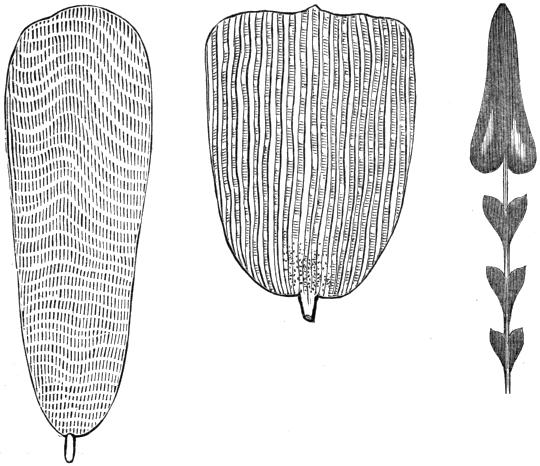 Fig. 25 shows a scale of the small insect called Podura Plumbea, the common Skiptail, magnified about five hundred times. To define the markings on this scale clearly is the highest test of a deep achromatic object-glass; and this drawing is given rather to explain what the observer should look for, than as a very correct representation. Fig. 26 is a scale or feather of the Menelaus Butterfly; Fig. 27 is the hair of a singular insect, the Dermestes; and Fig. 28 is a longitudinal cutting of fir, showing the circular glands on the vessels which distinguish coniferous woods. These latter objects may be seen by half-inch or quarter-inch achromatic glasses. Opaque objects are generally better exhibited by inch and two-inch glasses, when a general view of them is required, and by higher powers when we wish to examine their minute structure. In the latter case the light must be obtained by condensing lenses instead of the metallic specula.