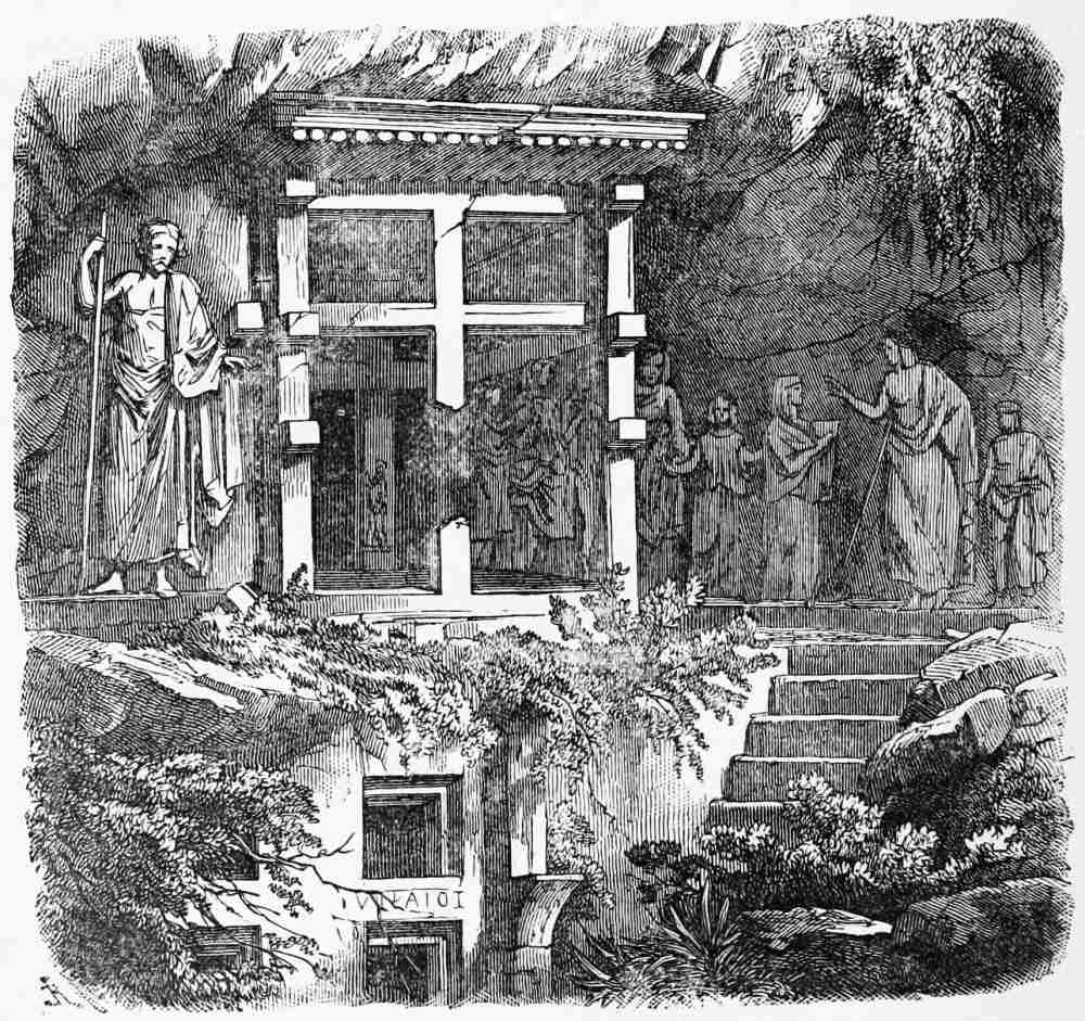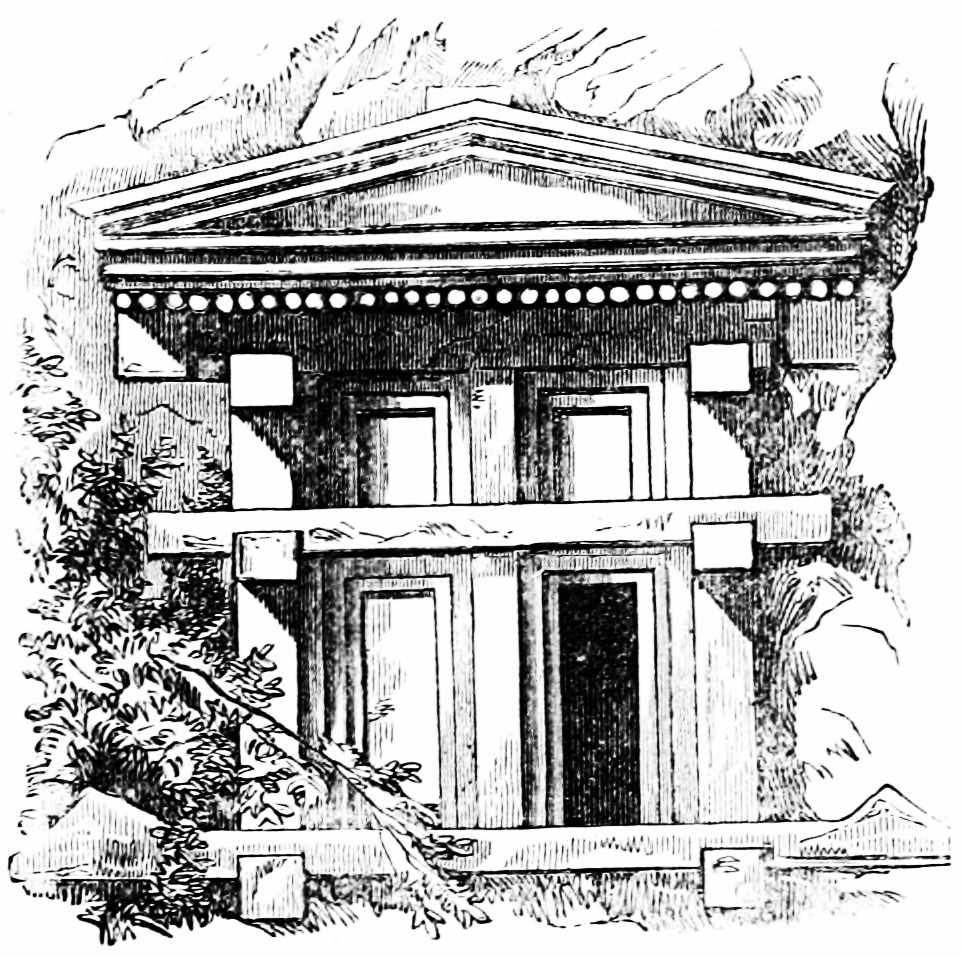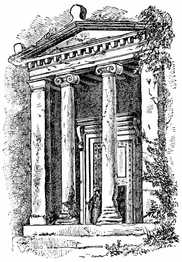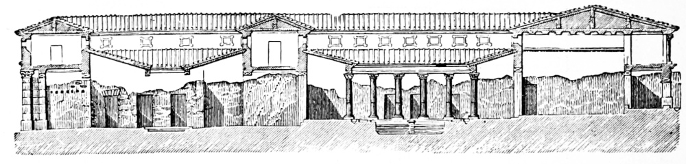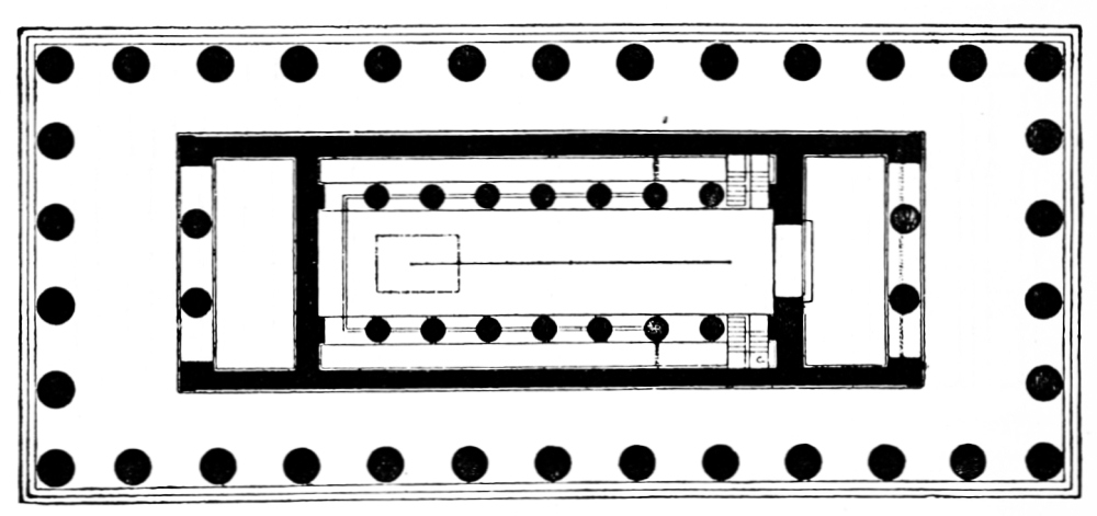 [G] The modern hypothetical distinction between agonal, or festal, temples and those used only for worship is now generally regarded as erroneous; while the existence of a so-called hypæthron—an opening supposed to have existed in the roof and ceiling of the naos for the admission of daylight—is inadmissible from the point of view both of design and of structure.