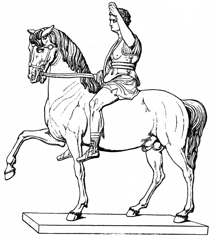 In view of the great confusion which results from an irregular orthography of Greek proper names, a return to the original spelling of words not fully Anglicized may need an explanation, but no apology: it is only adopting a system already followed by scholars of the highest standing. The Romans, until the advent of that second classical revival in which the present century is still engaged, served as mediums for all acquaintance with Hellenic civilization. They employed Greek names, with certain alterations agreeable to the Latin tongue, blunting and coarsening the delicate sounds of Greek speech, much in the same manner as they debased the artistic forms of Greek architecture by a mechanical system of design. The clear ον became um, ος was changed to us, ει to e or i, etc. This Latinized nomenclature, like the Roman triglyph and Tuscan capital, was exclusively adopted by the early Renaissance, until, with the increasing knowledge of Greek lands and works of art, names were introduced which do not happen to occur in the writings of Roman authors. These were either changed in accordance with the more or less variable standard in use during the sixteenth and seventeenth centuries, or were adopted in their Greek form without change, the latter method being more and more generally employed. This has gradually led to a partial revision of Greek names and their spelling. Zeus and Hermes, Artemis and Athene, have resumed, as Greek deities, their original titles;—Sunium and Assus have been changed to Sunion and Assos; while other names have only been reformed in part, as in the case of the unfortunate Polycleitos, who at times appears as Polycletos, and at times as Polycleitus. Confusion and misunderstanding cannot but result from this unreasonable triple system of Latinized, Anglicized, and Greek orthography. Peirithoos may be sought in alphabetically classified works of reference under Per and Pir as well as under Peir. Πέργαμον, Pergamon, is written Pergamum, Pergamus, and Pergamos, in the two latter forms being naturally confused with the Cretan Πέργαμος, Pergamos, which, in its turn, is Latinized to Pergamus. In the present book the Greek spelling of Greek names has been adopted in all those cases where the word has not been fully Anglicized; that is to say, changed in pronunciation, when it would sound pedantic to employ its original form, as, for instance, to speak of the well-known Pæstum and Lucian as Poseidonia and Loukianos. The English alphabet provides, however, two letters for the Greek κάππα, and the more familiar c has been employed, as in Corinth, acropolis, etc., except in cases where the true sound is not thereby conveyed,—namely, before e, i, and y,—when the k is substituted. Moreover, the final αι is transformed to æ, according to the universal usage of our tongue.