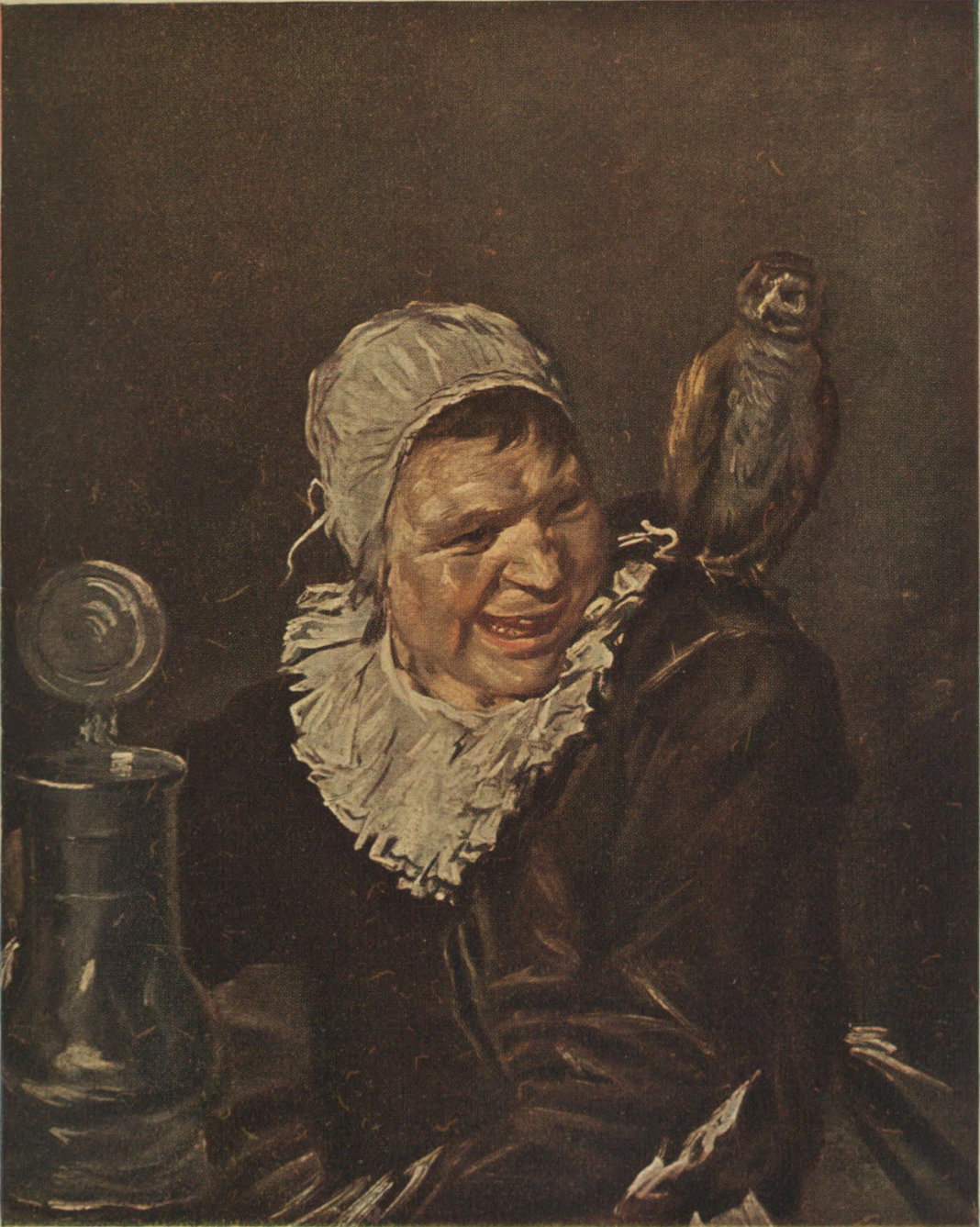 Painted in 1650. This ancient, wrinkled dame was what they call in seaport towns "a sailor's mother," rather a dubious compliment to mariners! She was a "merry toper," like many of Hals' companions, and went from tavern to tavern to get a drink. Her real name was Alle, or Alice Boll—easily transposed. The owl is probably a painter's skit of the screeching, scolding old hussy! The portrait is quite remarkable for poverty of colour. Franz was out of funds and out of paints, but he has made the old bloodless flesh look like life. He often painted her: he loved her odd look, if he liked not well her scorn!