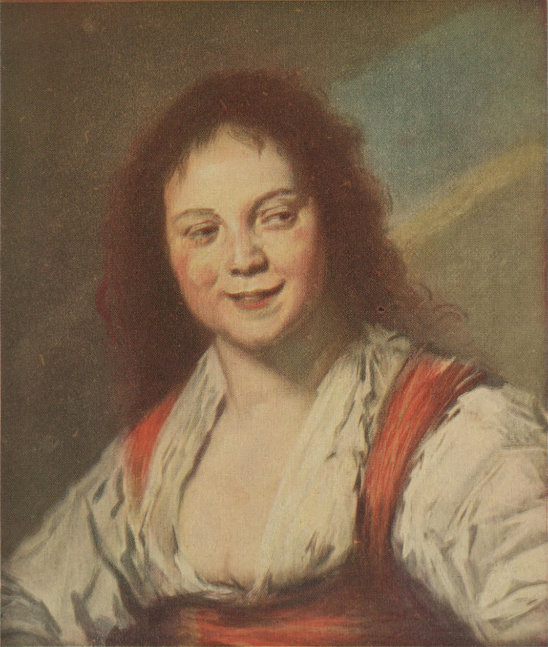 Painted in 1630. They call her "La Bohémienne" in Paris, but why we do not know. She is not a gipsy girl, but a slut out of Haarlem Fish-market, wholly bereft of all sense of appearance, and caring only for passing joke and gibe. The girl was a favourite studio model also, for studies of a figure and face like hers abound in the work of Haarlem painters. Thinly painted, in simple colours, this is a masterpiece of pigment snapshots. Its sauciness is as natural as may be. No doubt she and Hals exchanged many a bit of racy banter; perhaps she dared him to paint her just as she was.