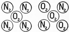 Air.—Seeing that the boiling-points of nitrogen and oxygen are different, it might be expected that on the liquefaction of atmospheric air the two elements would appear as two separate liquids. Such, however, is not the case; they come down simultaneously as one homogeneous liquid. Prepared on a large scale, liquid air may contain as much as 50% of oxygen when collected in open vacuum-vessels, but since nitrogen is the more volatile it boils off first, and as the liquid gradually becomes richer in oxygen the temperature at which it boils rises from about −192° C. to about −182° C. At the former temperature it has a density of about 0.910. It is a non-conductor of electricity. Properly protected from external heat, and subjected to high exhaustion, liquid air becomes a stiff transparent jelly-like mass, a magma of solid nitrogen containing liquid oxygen, which may indeed be extracted from it by means of a magnet, or by rapid rotation of the vacuum vessel in imitation of a centrifugal machine. The temperature of this solid under a vacuum of about 14 mm. is −216°. At the still lower temperatures attainable by the aid of liquid hydrogen it becomes a white solid, having, like solid oxygen, a faint blue tint. The refractive index of liquid air is 1.2068.