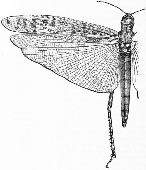 | Fig. 4.—Rocky Mountain Locust (Caloptenus spretus). (After Riley.) | |
