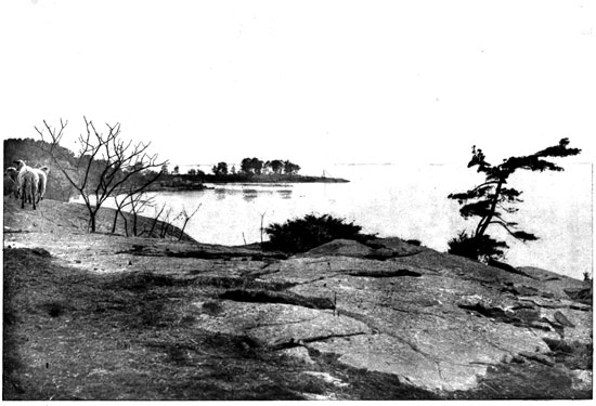 Riviere du Loup is the best developed of the watering-places of the Lower St. Lawrence. The shore is gentle, and in sharp contrast with the rugged northern bank. The village spreads on a broad plateau, formed by the inflowing stream, there being hotels and boarding-houses scattered about, a tall-spired church back of the town, and a long wharf stretching out in front. To the eastward the sloping shore extends far away to Cacouna, eight miles below, another favorite resort also sentinelled by its church. The Riviere du Loup (Wolf River) naming this place flows out of the distant southern mountains to the St. Lawrence, and is said to have been so called from the droves of seals,—called by the French "loups-marines"—formerly frequenting the shoals off its mouth. Just back of the village the stream plunges down a waterfall eighty feet high. Cacouna is the most fashionable resort of the southern shore, and a place of comparatively recent growth, its semicircular bay with a good beach and the cool summer airs 495 being the attractions. In front and connected by a low isthmus is a large peninsula of rounded granite rock, shaped much like a turtle-back and rising four hundred feet. From this came the Indian name, Cacouna, or the turtle.