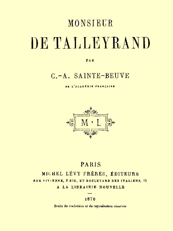 [1] Essai sur Talleyrand, par sir Henry Lytton Bulwer, ancien ambassadeur. Traduit de l'anglais par G. Perrot.